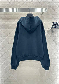 Hooded Knitted Sweatshirt - Navy Blue / S