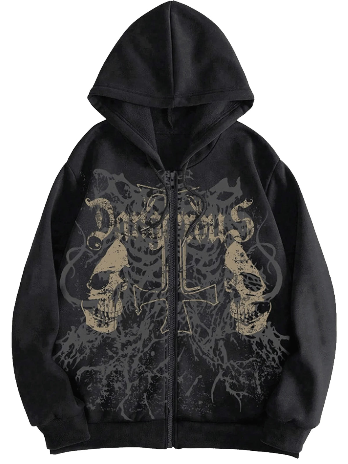 Goth Skull Zip Up Hoodie - United States / S / black|Pack of 1