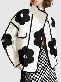Floral Print Stand Collar - BLACK WHITE / M / United States