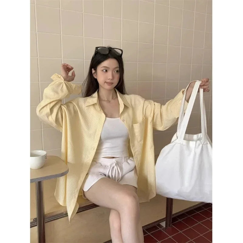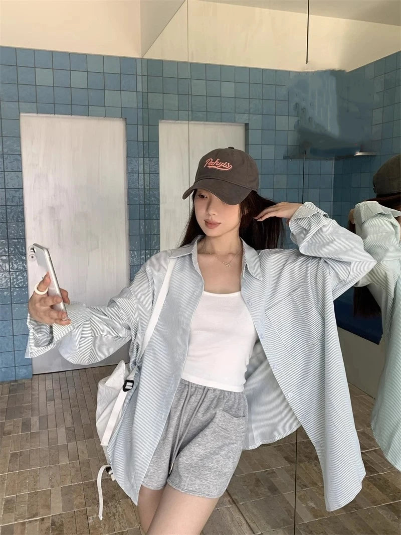 Women's Striped Lapel Blouse