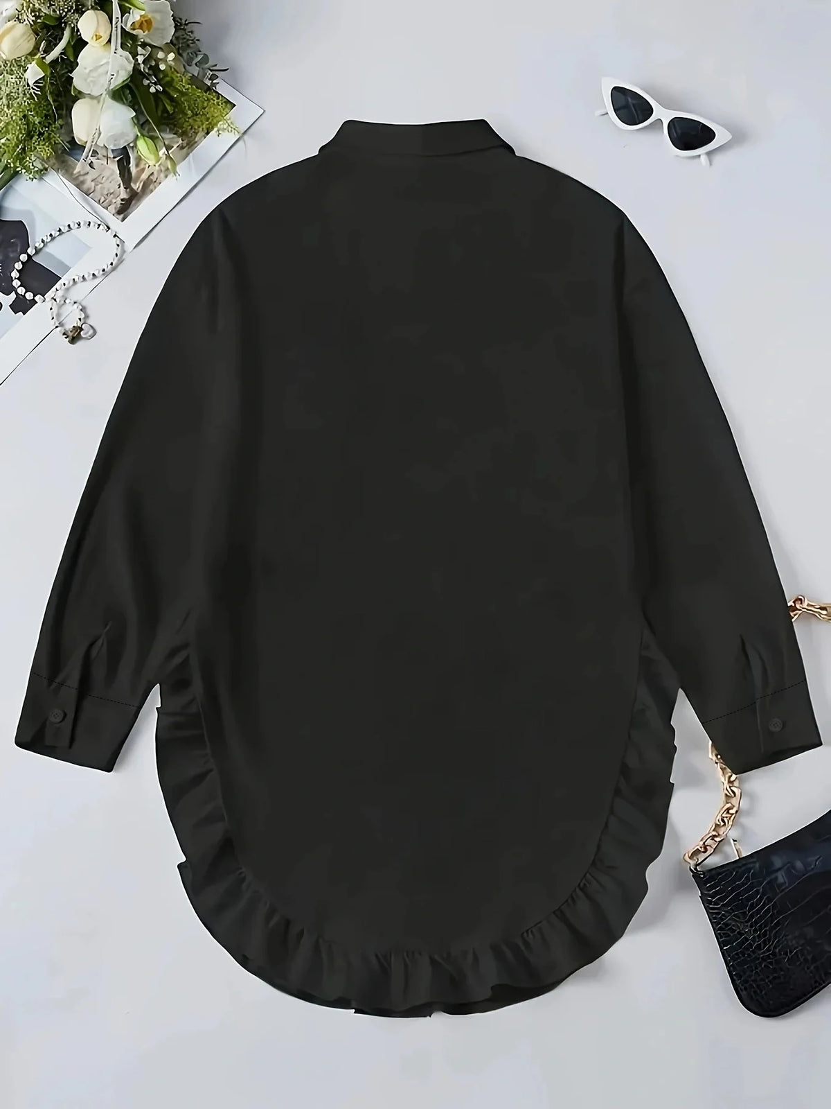 Pleated Lace Hem Shirt - Light Blue / XL / United States