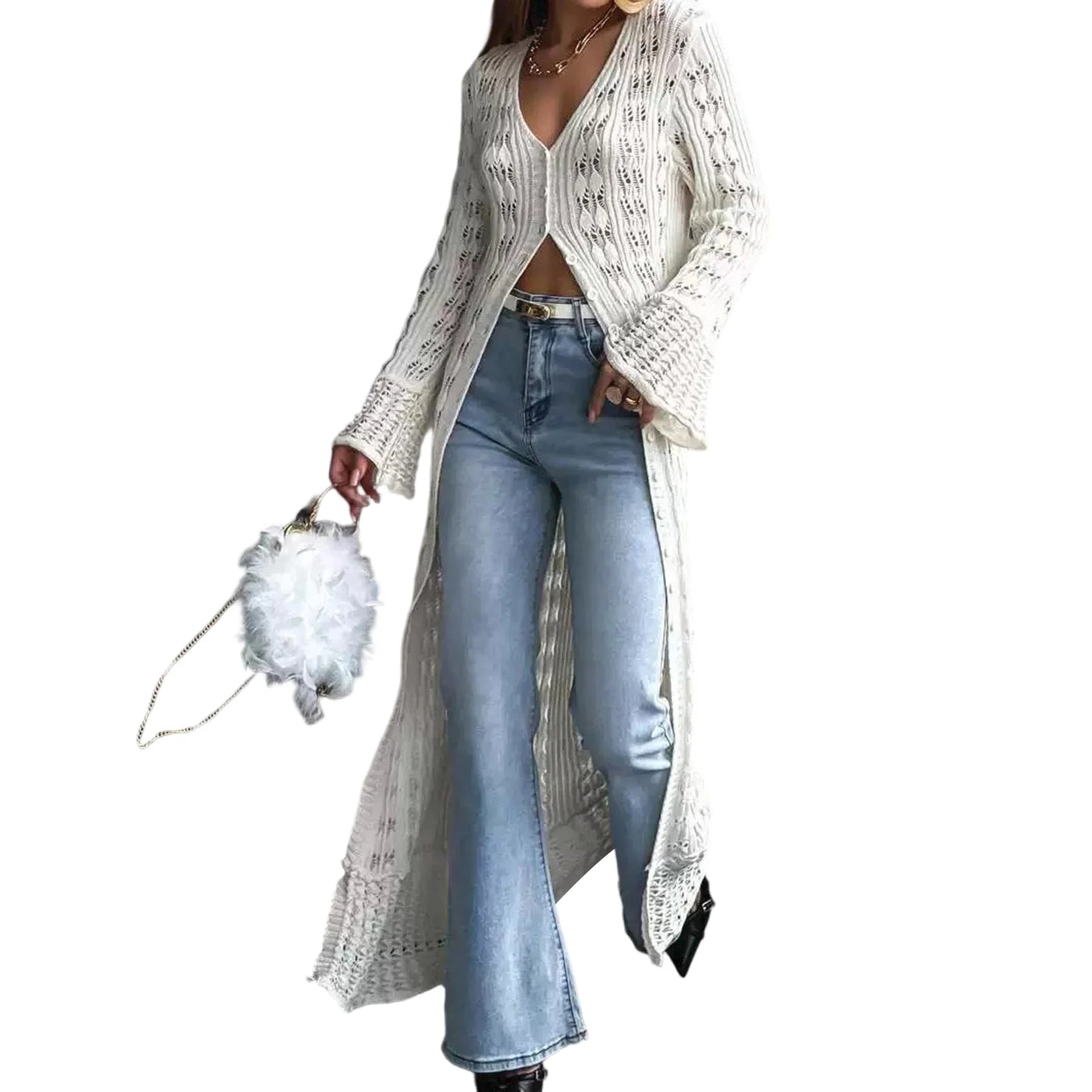 Button-Up Long Cardigan - WHITE / S / United States
