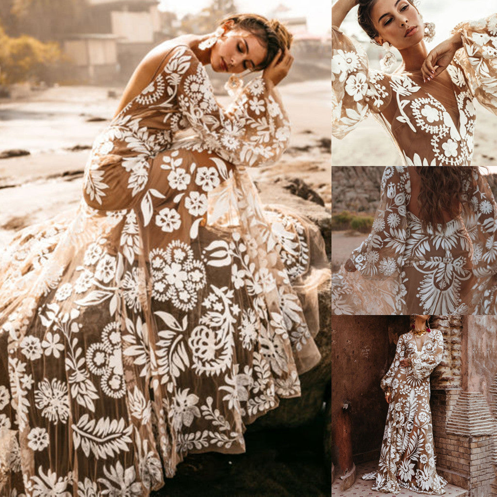 Floral Evening Dress - White / L / CN