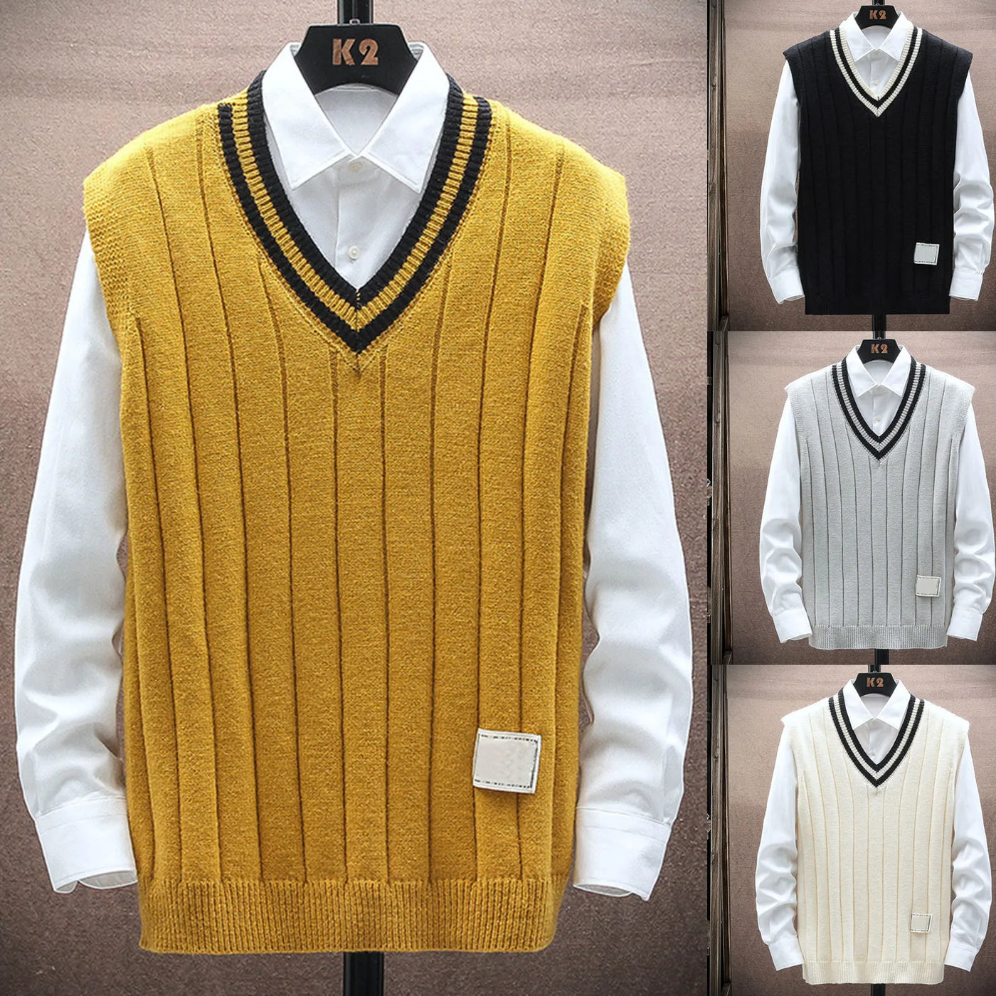 Slim Cotton Sweater Vest - Black / XXXL / CN