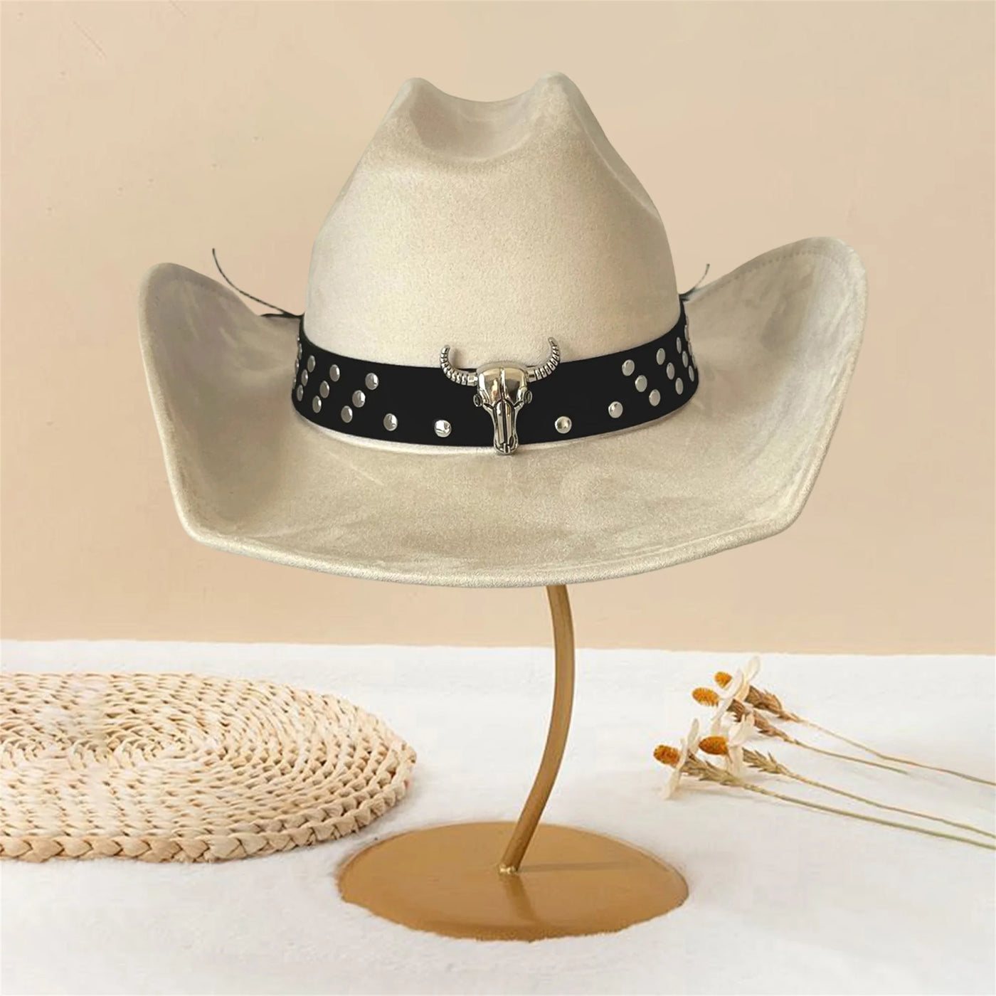 Bull Head Cowboy Hat - Beige / M / United States